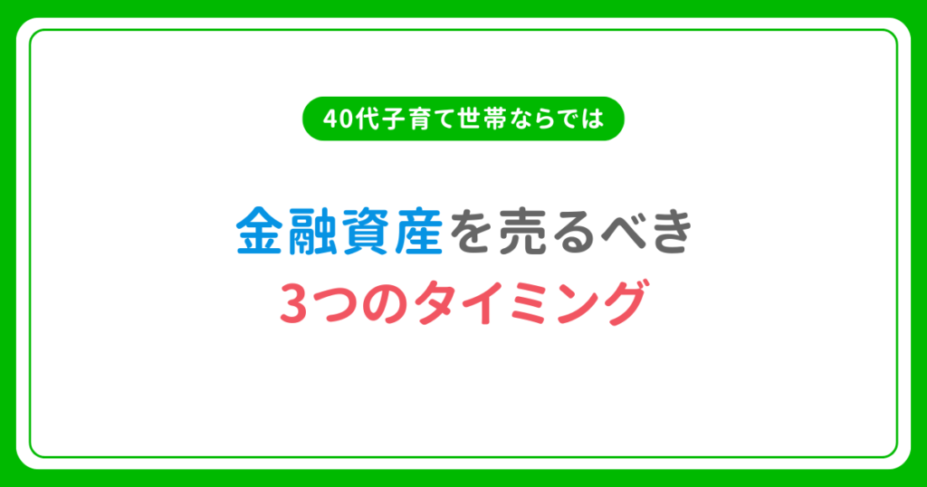 私たち、40代の子育て世帯が金融資産を売却するタイミングは、主に以下の3つのパターンが考えられます。