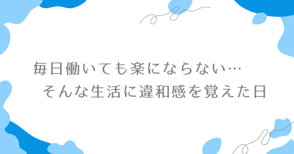 毎日働いても楽にならない…そんな生活に違和感を覚えた日