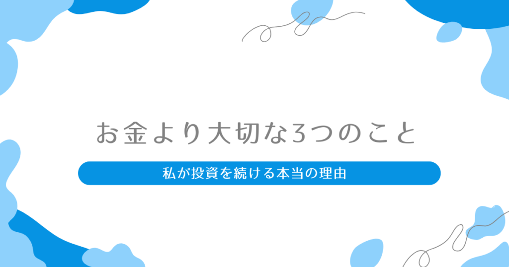 そう——私が本当に求めていたのは「お金」そのものではなく、お金がもたらす 『時間の自由』 と 『心の平穏』、そして 『人生の選択肢』 だったのです。
